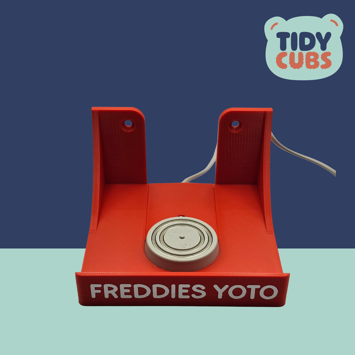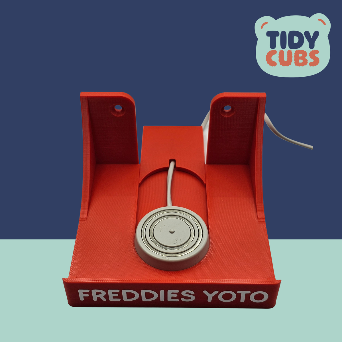 Please note this listing does not include the charger or Yoto Player. It is for the charger holder only. Requires 2 screws and desired wall fixing plugs, these are not included. The Yoto Player charger locates into the centre of the charging station by sliding it into the slot from the rear, the locking piece can then be slid over the cable into the slot to lock the charger in position. This allows the yoto player to be lifted on and off without the magnetic action lifting the charger off the shelf.