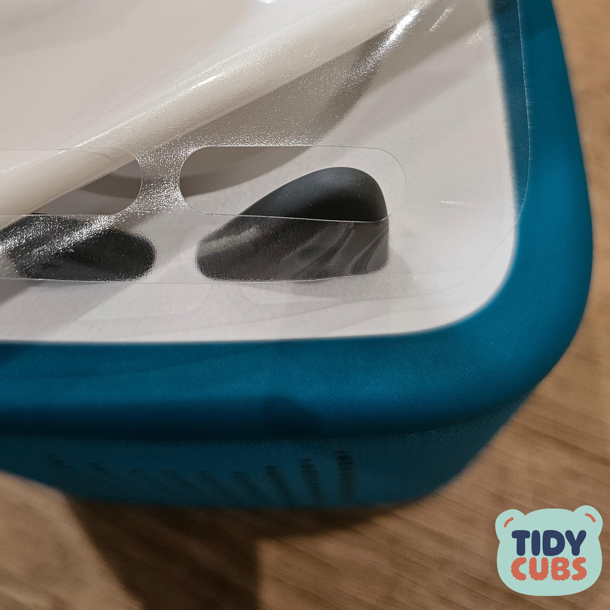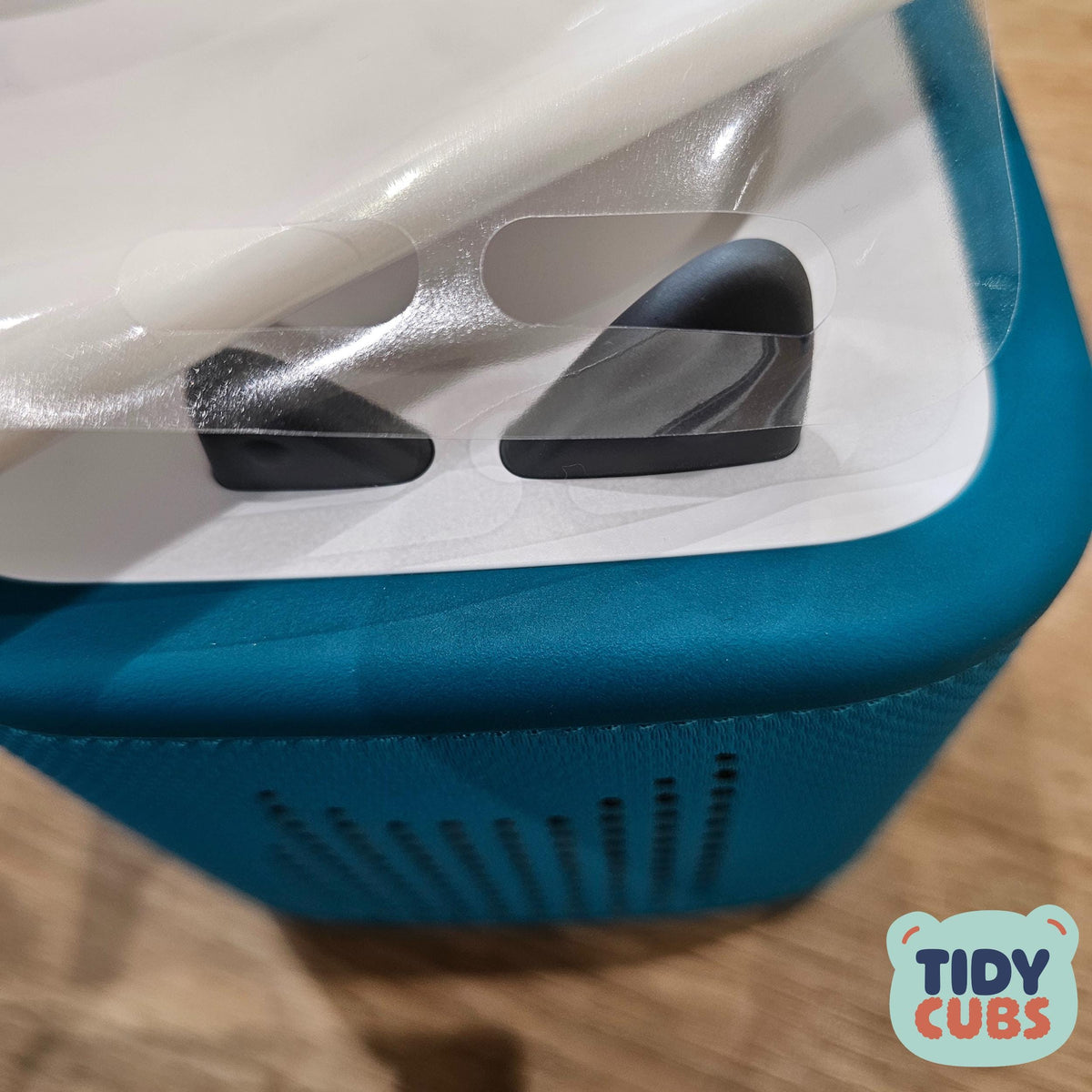 Installation is quick and simple. Just peel off the backing paper and apply over the Toniebox volume controls first, check alignment and careful smooth into place to ensure no wrinkles or creases.